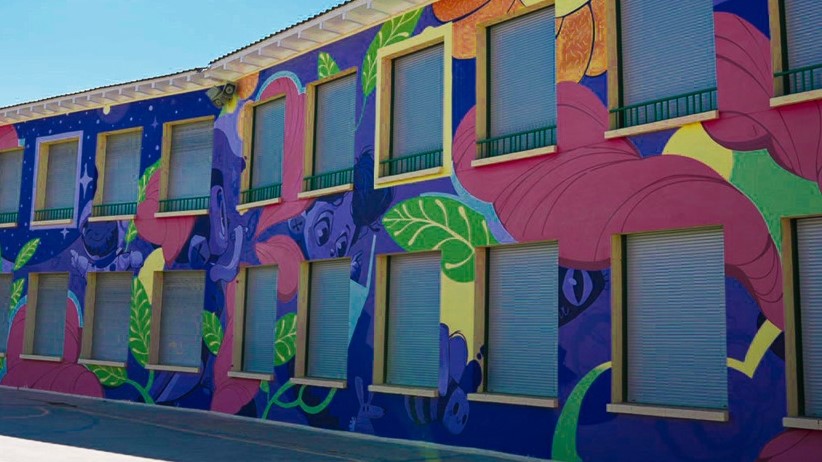 Ricardo Cavolo pintó un exótico mural frente al IES Montes Negros: un corazón alado flanqueado por dos jaguares. Dentro del instituto, en las paredes del patio, es posible admirar otro mural, obra del grupo Boa Mistura: dos palabras superpuestas: yo y tú, que simbolizan la unión de dos personas, que al unirse dan lugar a un nuevo color y un nuevo cuerpo.